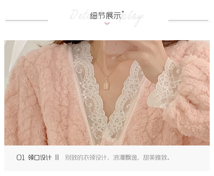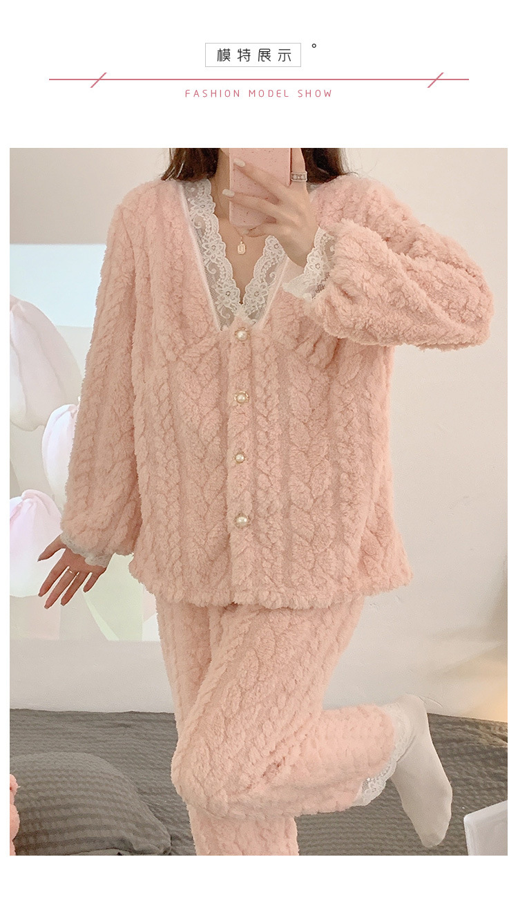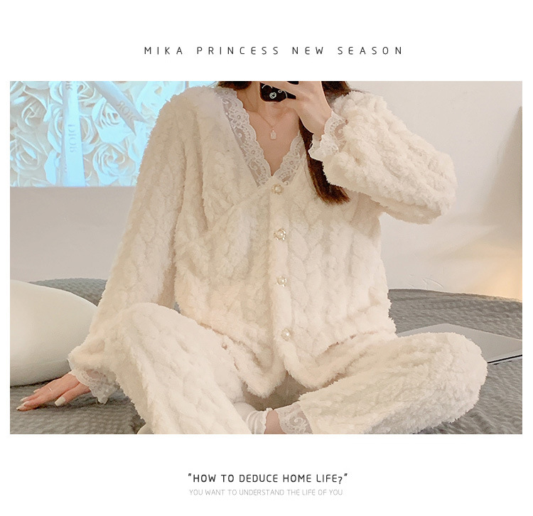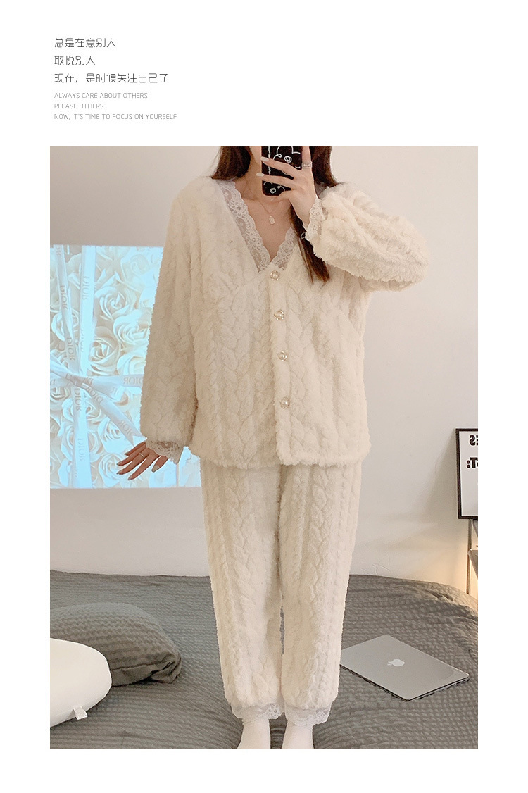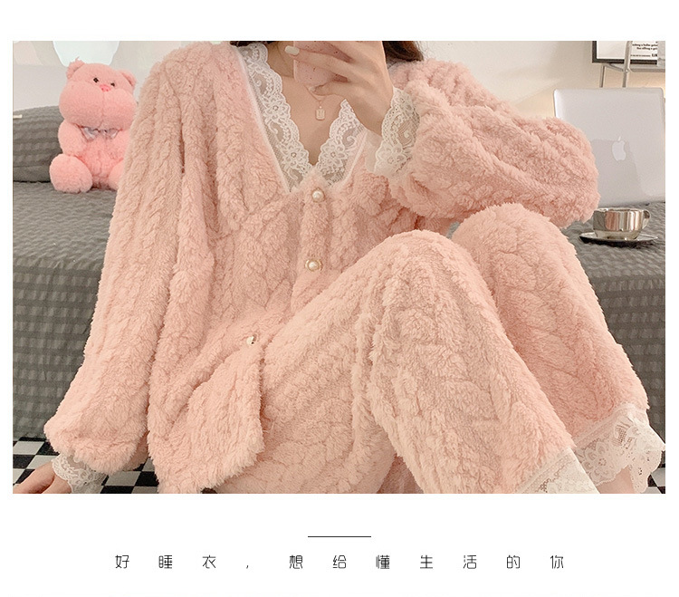 Popular Sexy Pajama Lady Flannel Winter Thickened Set Lace Lace Pajama Coral Velvet Pure Wind Home Wear